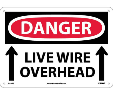 Danger: Live Wire Overhead - Up Arrow - 10X14 - Rigid Plastic - D579RB - Jendco Safety Supply