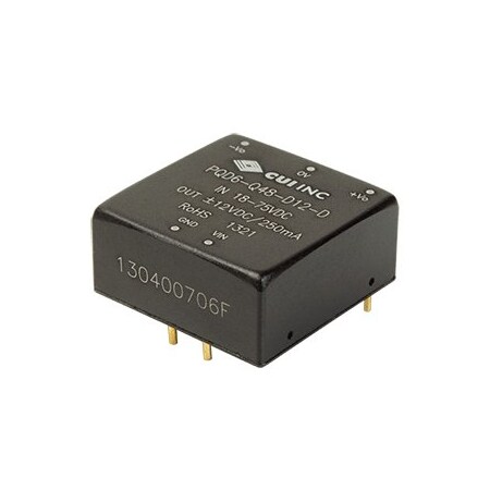 | Feature | <b>Price For:</b> Each <b>Manufacturer</b>: CUI Inc. <b>Product Category</b>: Isolated DC/DC Converters <b>RoHS</b>: <b>Output Power</b>: 6 W <b>Input Voltage</b>: 9 V to 36 V <b>Number of Outputs</b>: 1 Output <b>Output Voltage-Channel 1</b>: 15 V <b>Output Current-Channel 1</b>: 400 mA <b>Isolation Voltage</b>: 1.5 kVDC <b>Mounting Style</b>: Through Hole <b>Dimensions</b>: 25.4 mm x 25.4 mm x 11.7 mm <b>Commercial/Medical</b>: Commercial <b>Brand</b>: CUI |