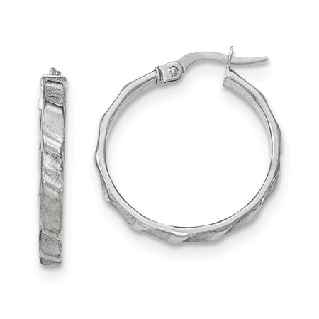 14K White Gold Satin and Polished Hoop Earrings (Approximate Measurements 25mm x 25mm)