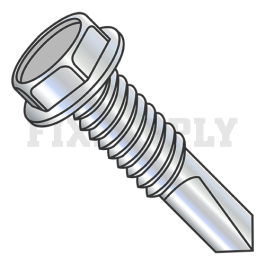 Self-Drilling Screw - Hex Washer Head - Zinc Plated Steel - 12-24 Thread - 7/8" Long - #4 Drill Point