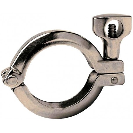 Dixon 13MHHV Single Pin Heavy Duty Pipe Clamps are constructed from 304 stainless steel and intended for use with Schedule 5 and Schedule 10 pipe ferrules. These cross hole wing nut style clamps allow for quick and easy tightening without the need for tools.<br><br>Dixon offers a complete line of replacement components and accessories to compliment their clamps. While these clamps are designed for heavy duty applications, over time the wear and tear of repeated change outs will start to take a toll. So, whether it's a lost wing nut, bent rivet pin, or cross threaded bolt, we have you covered! You can even upgrade these clamps with a Spring Loaded Nut or Torque-Rite Nut for added security in high vibration or PTFE creep environments.<br><br><b>Safety Note:</b> Service pressure ratings are based on the following parameters: matching elastomer gaskets and weld ferrules properly aligned and assembled with the clamps tightened to required torques. Tests are done hydrostatically with no water hammer or shock loads. Please note the pressure ratings of the described unions may be above the recommended pipe line operating pressures.