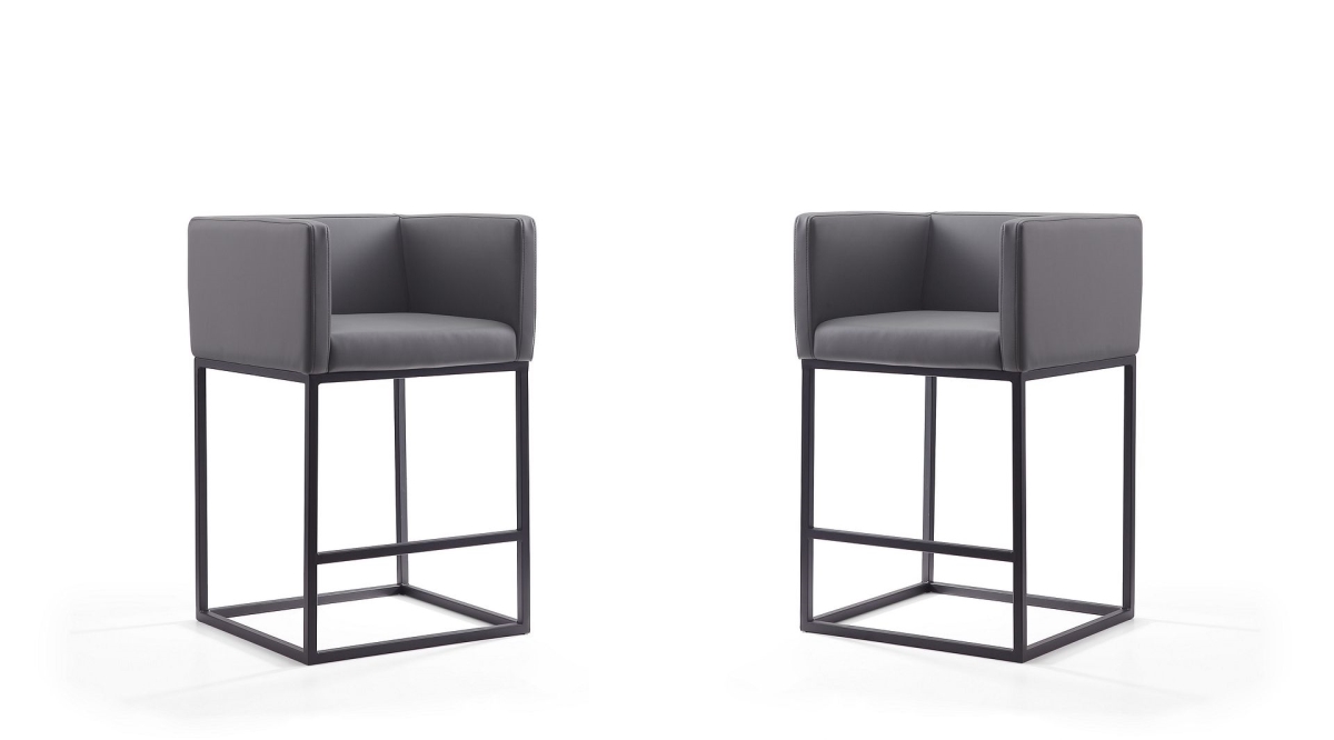Manhattan Comfort Embassy Mid Century Modern Home Kitchen Counter Height Bar Stool, Set of 2, Grey