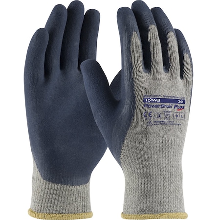 PowerGrab Plus 39-C1600/XL Seamless Gloves with Latex Micro Finish Grip, Gray/Blue, X-Large, 10-Gauge, 1-Dozen