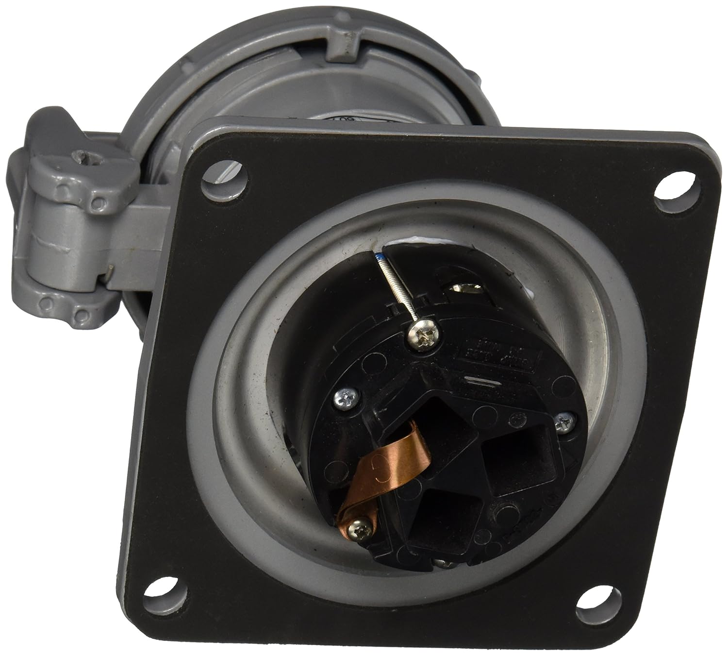 Hubbell Wiring Device-KELLEMS 60 Amp, 1-Phase Valox 357 Housing and Aluminum Shroud Watertight Pin and Sleeve Receptacle, Gray