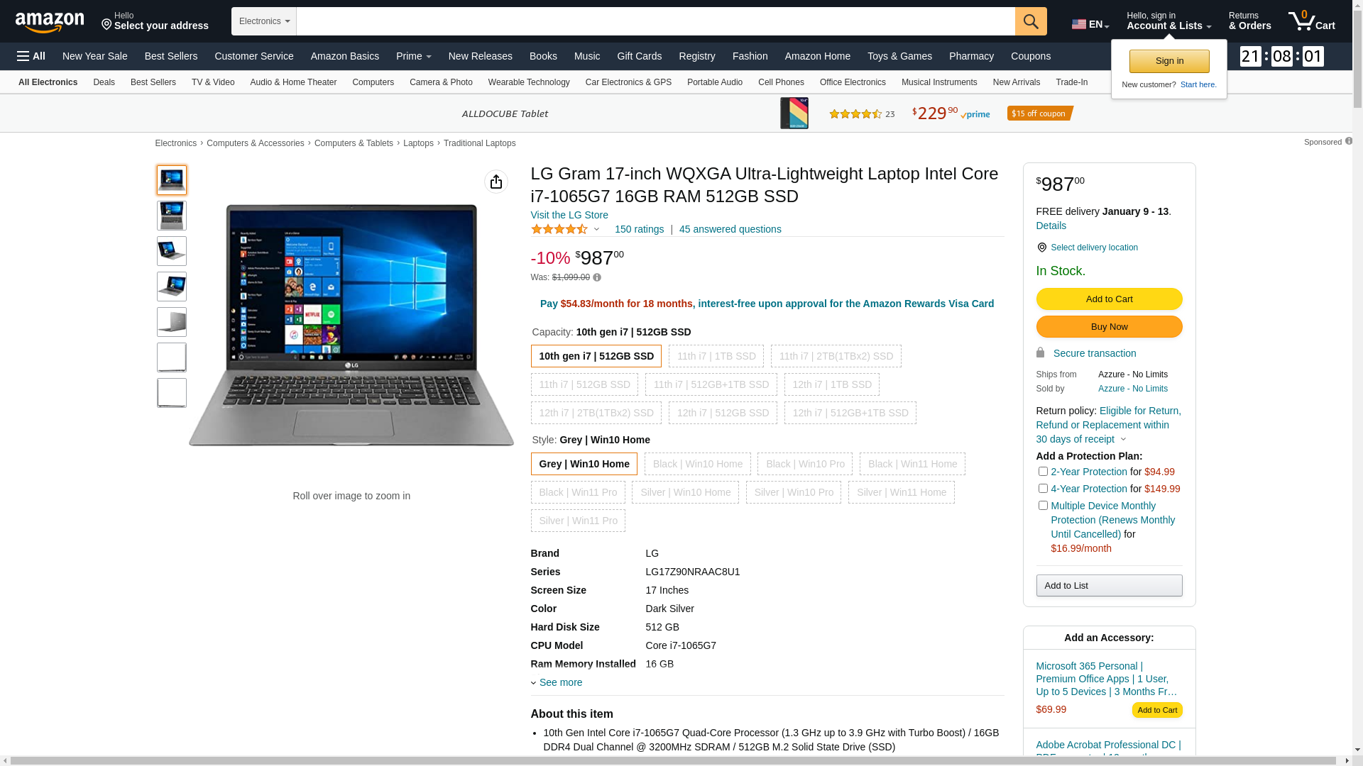 LG Gram 17-inch WQXGA Ultra-Lightweight Laptop Intel Core i7-1065G7 16GB RAM 512GB SSD