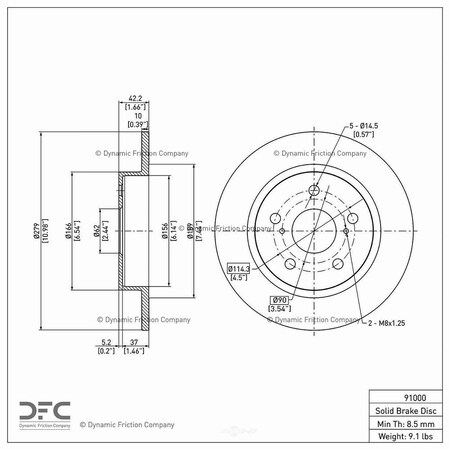 Dynamic Friction Company Rear Disc Brake Rotor 600-91000 (1) For 2011-2016 Scion tC