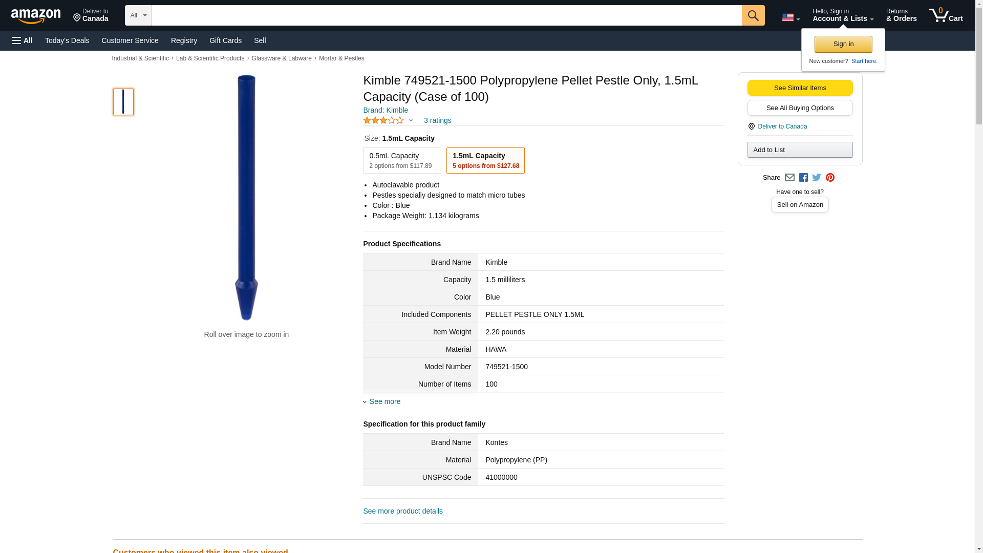 | Feature | <b>Price For:</b> Each <b>Item</b>: Pellet Pestle <b>Length</b>: 7cm <b>Color</b>: Blue <b>Type</b>: Disposable <b>Material</b>: Polypropylene <b>Size</b>: 1.5mL <b>Country of Origin (subject to change)</b>: United States |
