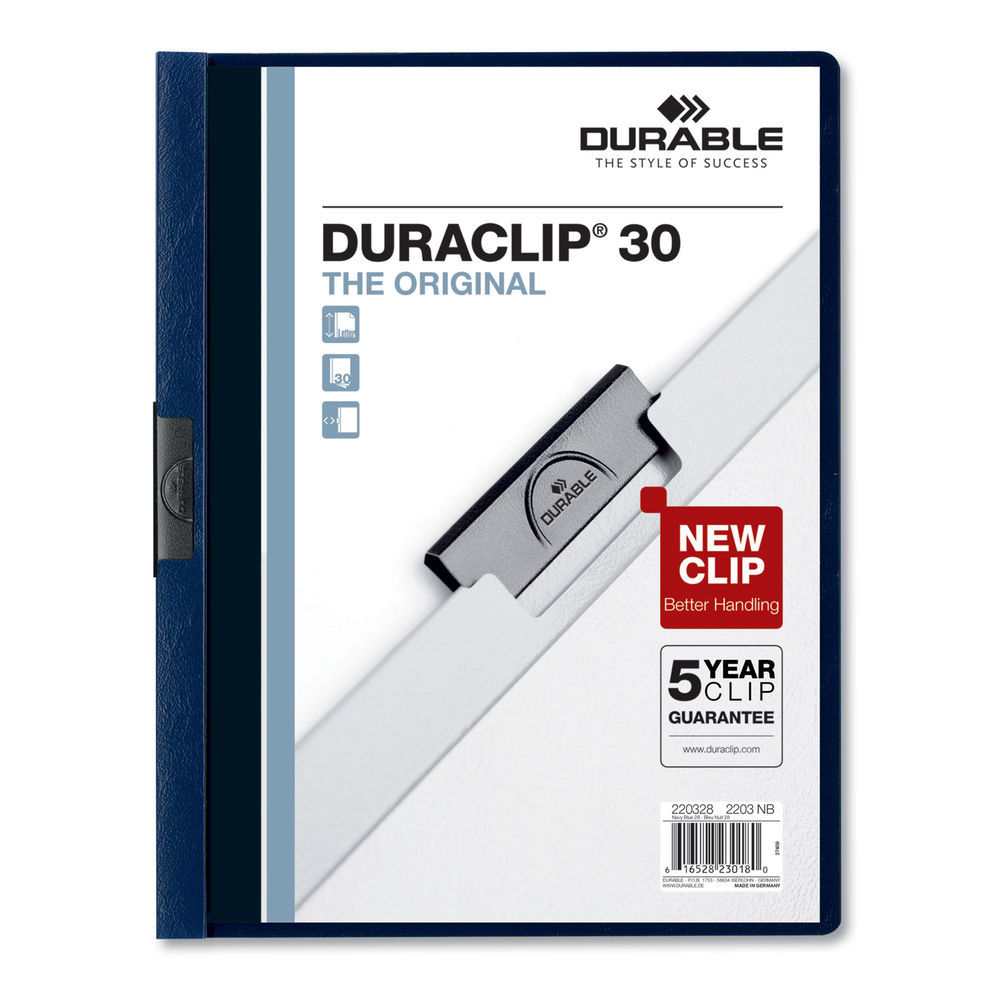 Durable Vinyl DuraClip Report Cover w/Clip, Letter, Holds 30 Pages, Clear/Navy