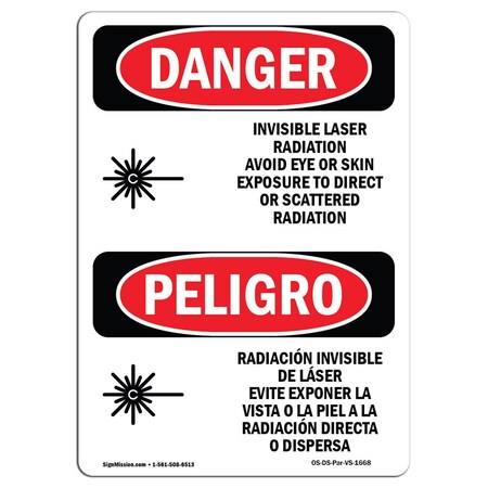 OSHA Danger, Invisible Laser Radiation Exposure Bilingual, 14in X 10in Rigid Plastic