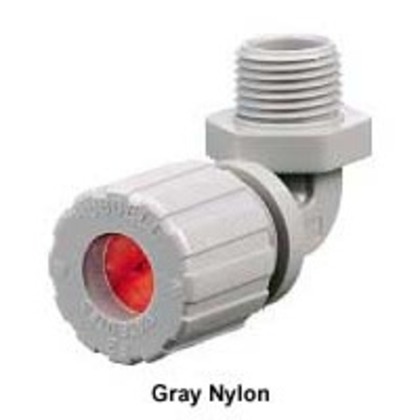 - Price For: Each Material: Nylon Standards: CSA LR27378/UL E54218(M) Connector Type: 90 Degrees Color: Brown Number of Cords: 1 Cord Dia. Range: 1/2" to 5/8" Conduit Size: 1/2" Length: 2-1/2" Item: Liquid Tight Cord Connector Country of Origin (subject to change): United States