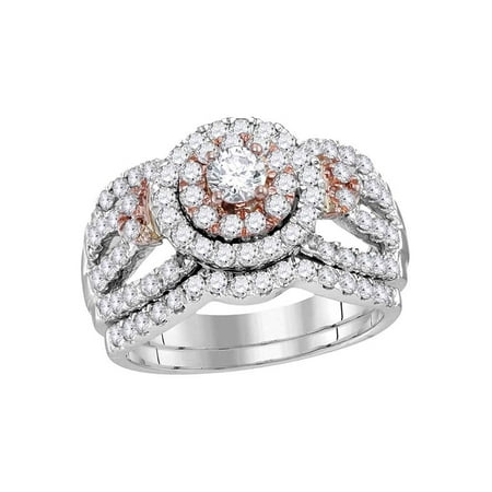 <ul> <li>14kt White Gold</li> <li>1 & 1/2 Carats total weight --- 1/4 carat center solitaire</li> <li>6.18 grams (approximately)</li> <li>Ring size selectable. All diamonds are natural and conflict-free in origin.</li> </ul>