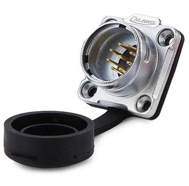 Cnlinko DH-20-C09SX-03-401 is a 9 pin male socket for signal applications. Accepts 26-24 AWG cable. Rated for 400V and 5 A. Includes waterproof cover.