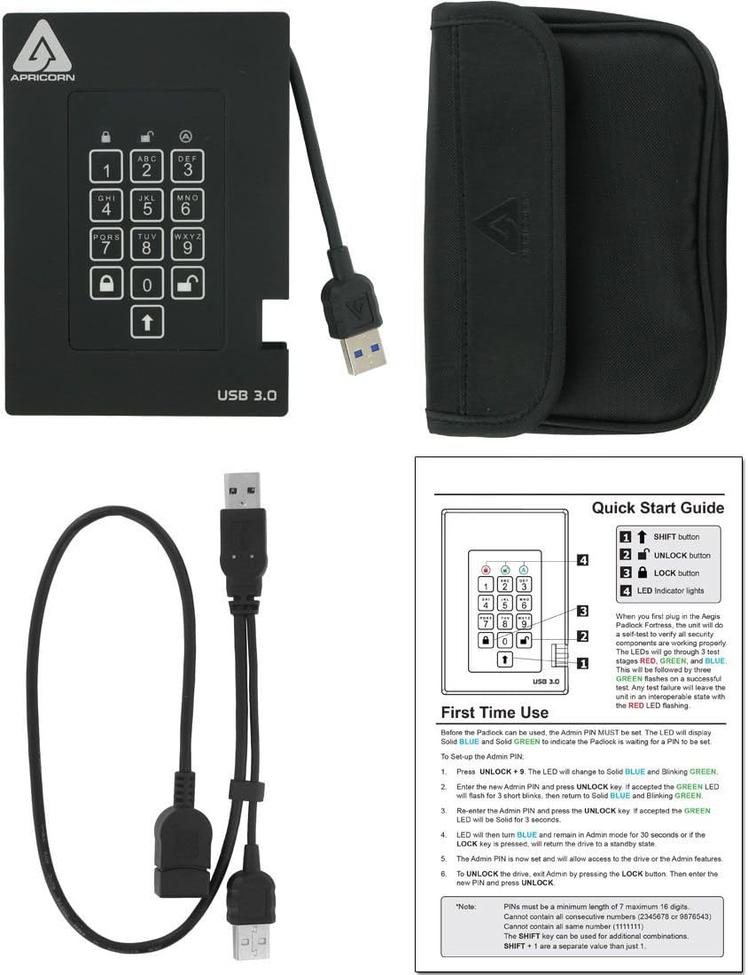 Apricorn Aegis Padlock Fortress A25-3Pl256-S4000F 4 Tb Solidstate Drive - External - Usb 3.0 - 8 Mb Buffer - 3 Year Warranty Padlock Ssd Usb 3 Hw Encrypted - A25-3PL256-S4000F