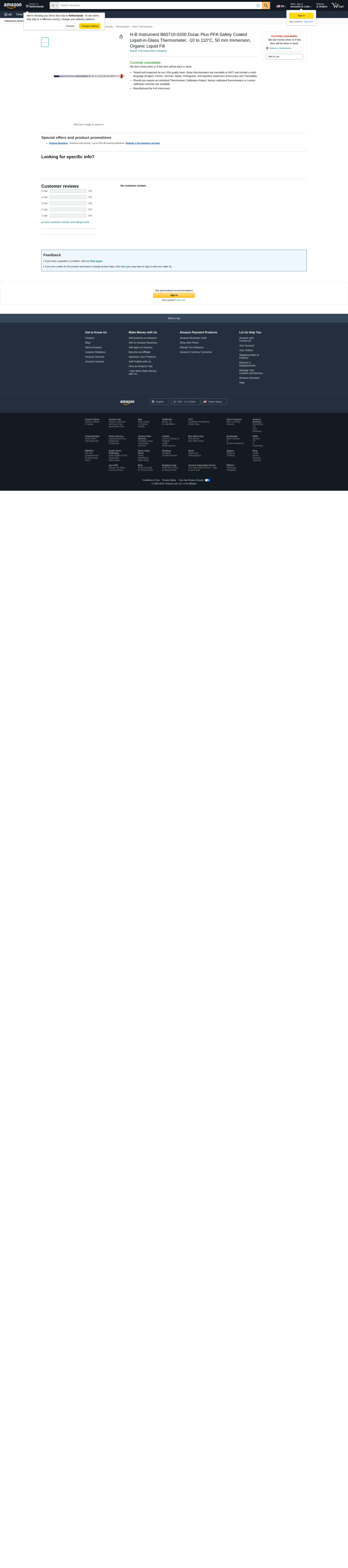 H-B Instrument B60710-0200 Durac Plus PFA Safety Coated Liquid-in-Glass Thermometer, -10 to 110°C, 50 mm Immersion, Organic Liquid Fill