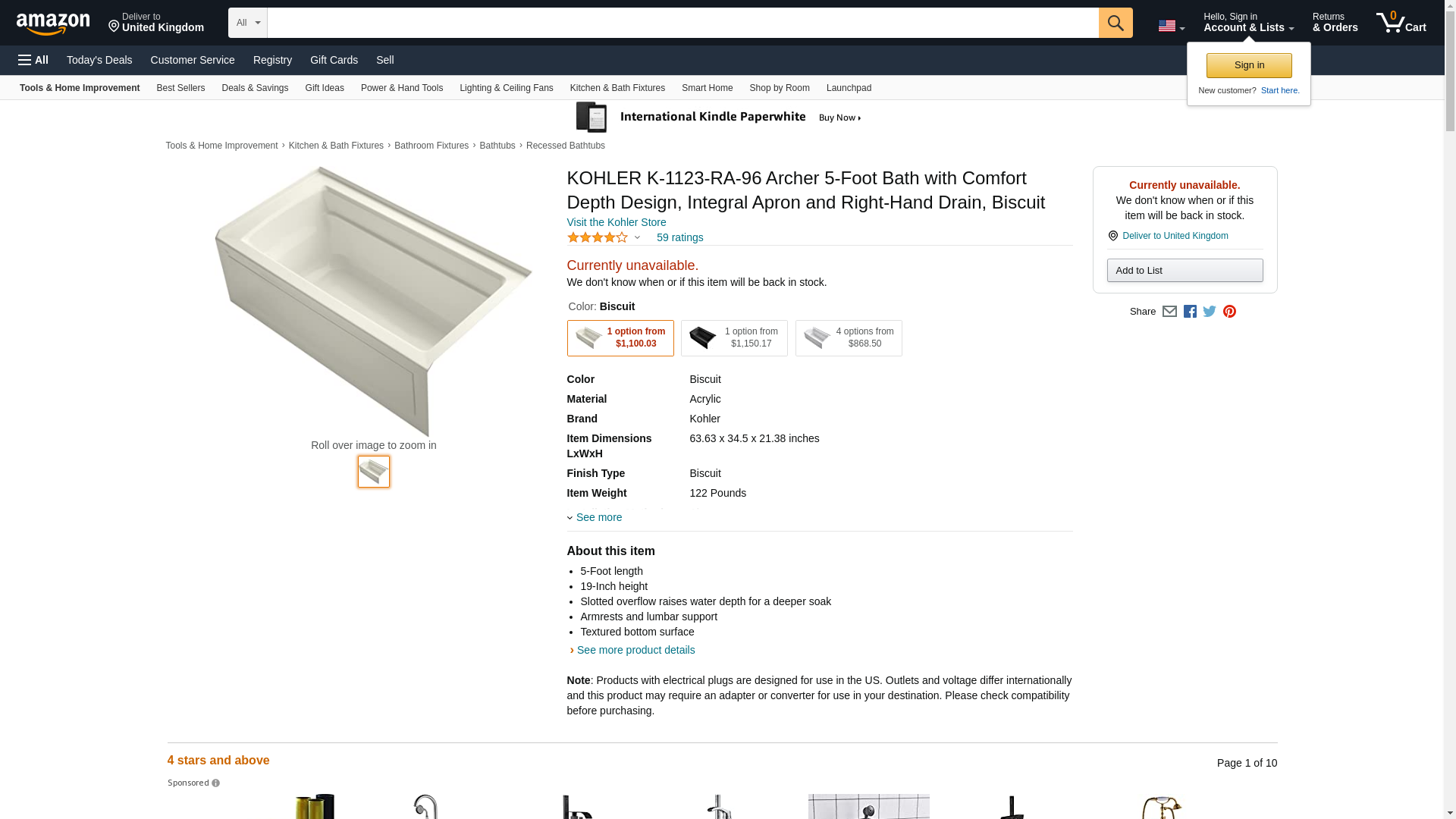 Kohler - 1123-RA-58 - Archer? 60'' x 32'' alcove bath with integral apron, integral flange and right-hand drain