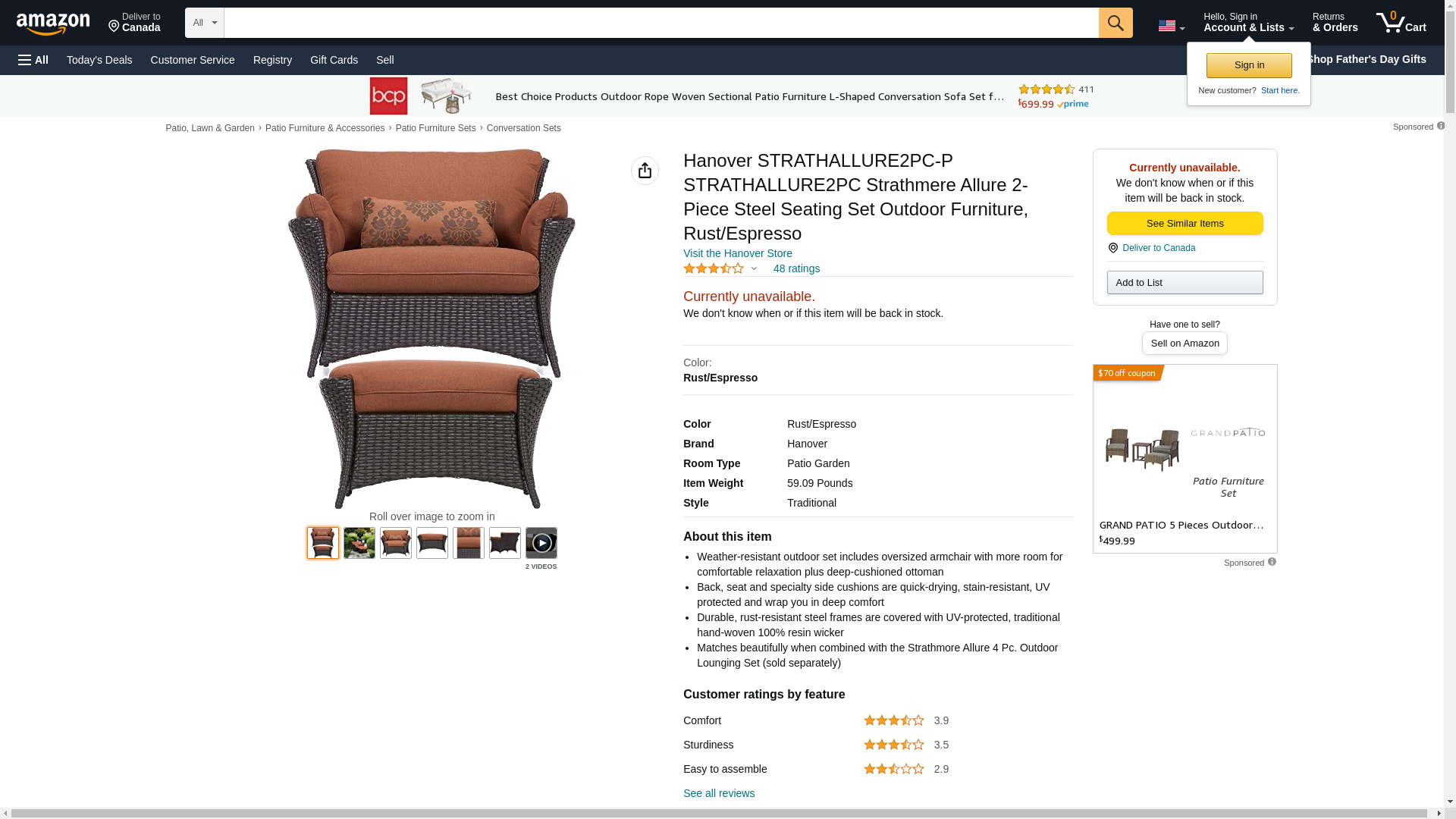 | Feature | Weather-resistant outdoor set includes oversized armchair with more room for comfortable relaxation plus deep-cushioned ottoman |