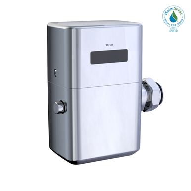 TOTO ECOPOWER 1.28 GPF Toilet Flushometer Valve is ideal for high-traffic spaces, providing an elegant water conservation solution. Engineered to require no electricity or routine battery replacement, the ECOPOWER Flushometer Valve saves energy and water while providing maximum performance in even the most demanding commercial spaces. Powered by the force of running water, ECOPOWER hydro-turbines create an electrical current that is stored in rechargeable cells to power the sensor of the valve. The ECOPOWER flush valve is highly efficient, replenishing power stores with no minimum daily usage. No external power source or battery replacement is necessary. Ensuring that water flows only when needed, the self-adjusting ECOPOWER sensor is now stronger with a wider detection range that eliminates ghost flushing that could waste water, and now supports improved automatic flushing to prevent missed flushes. A manual override flush button is present when needed. The piston and solenoid mechanism, a marked improvement over traditional rubber diaphragm type valves, maintains consistent flush volume under a range of supply pressures. The valve is WaterSense certified and CA Title 20 and CalGreen compliant. The valve is also ADA compliant. Includes flushometer valve for toilets with 1-1/2 inch top spud inlet using 12 inch vacuum breaker tubes. Purchased separately: angle stop, vacuum breaker set, spud nut and escutcheon to connect to the toilet spud, and sweat solder kit.