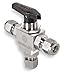 - <b>Price For:</b> Each <b>Stem Material</b>: 316 Stainless Steel <b>Connection Type</b>: Comp. x Comp. x Comp. <b>Item</b>: Mini Ball Valve <b>Port</b>: Standard <b>Ball Material</b>: 316 stainless steel <b>Handle Type</b>: Toggle <b>Temp. Range</b>: -20 Degrees to 280 Degrees F <b>Stem Type</b>: Blowout Proof <b>Seat Material</b>: PCTFE(KEL-F) <b>Body Seal Material</b>: PCTFE(KEL-F) <b>Body Style</b>: 3-Way <b>Standards</b>: SAE, MIL-F-18866, ASME, ASTM, CE