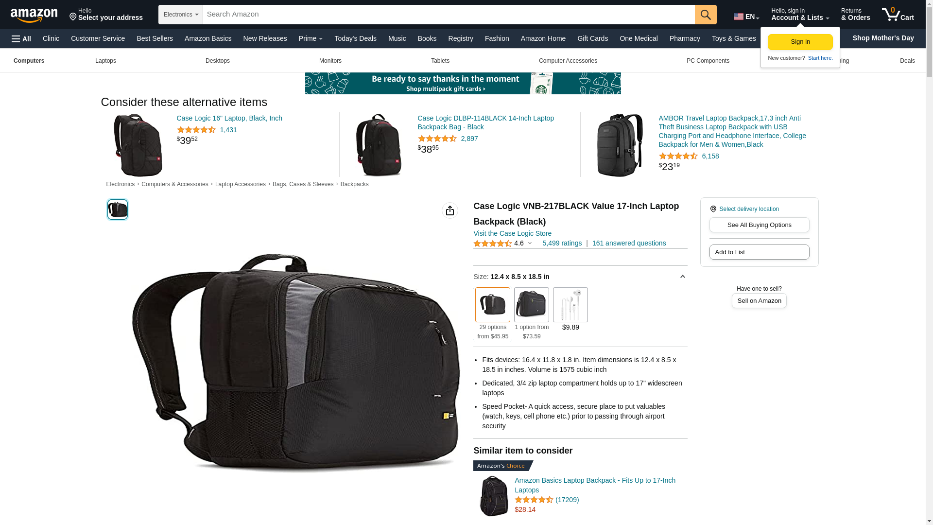 Case Logic VNB-217BLACK Value 17-Inch Laptop Backpack (Black)