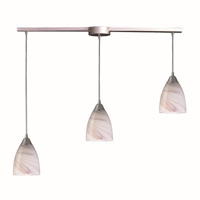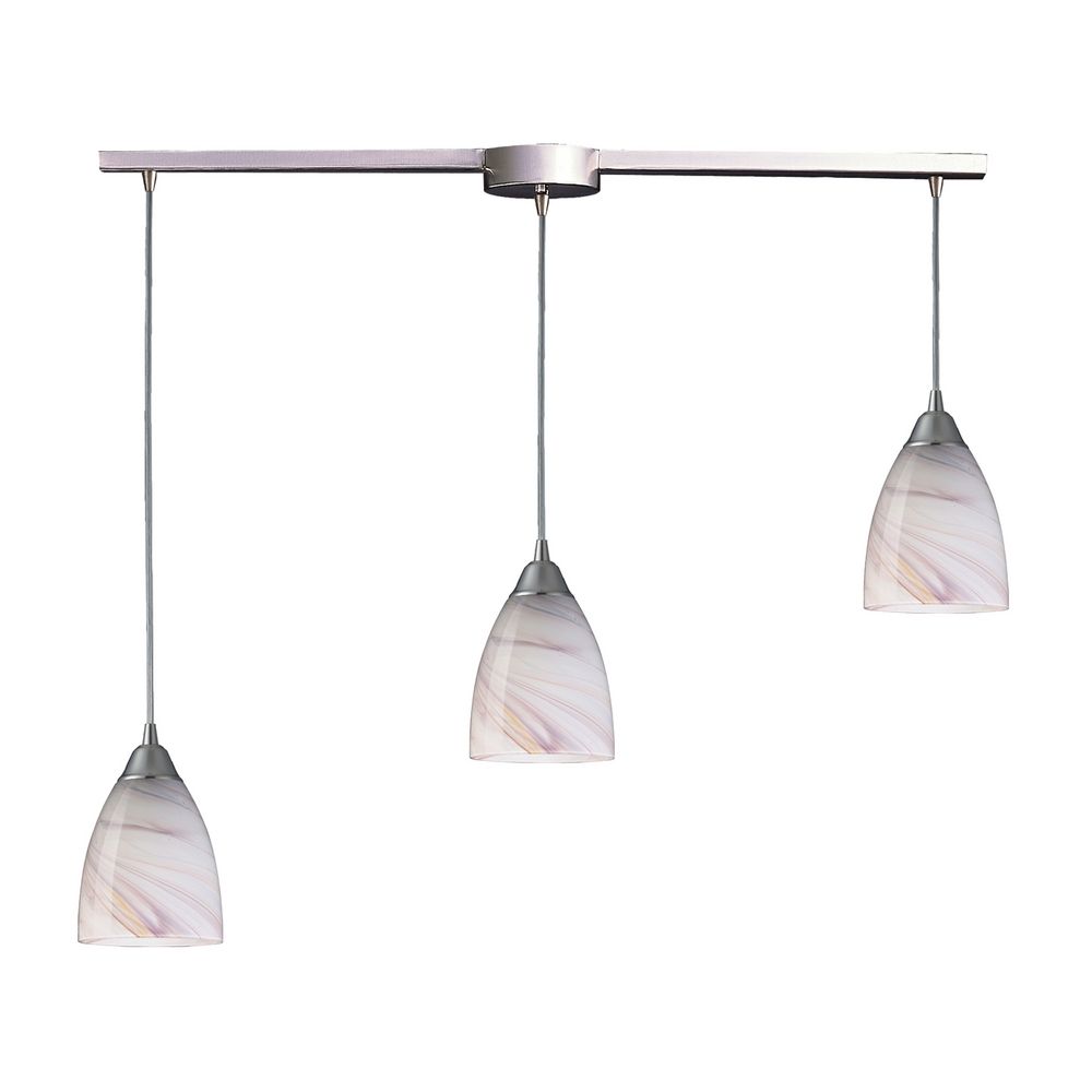 Elk Home Pierra Mini Pendant - 3-Light in Satin Nickel Finish, with Creme Lilac Swirl Glass, Transitional Style