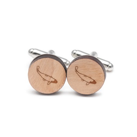 <ul> <li>Koi Kite Cufflinks, Wood Cufflinks Hand Made in the USA</li> <li>Materials: Made from premium cherry wood.</li> <li>Dimensions: Cufflink circle is 14mm x 14mm. 3mm thickness</li> <li>Laser Cut & Etched in USA</li> </ul>