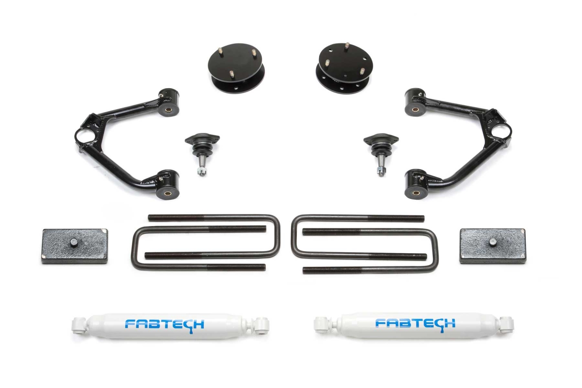 Fabtech K1126 3.5 in. Budget Ball Joint UCA Front & Rear Suspension Shock Lift Kit for 2019-2020 Chevy & GMC K1500