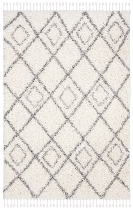 Safavieh MTS335B-5 5 ft. 3 in. x 7 ft. 6 in. Moroccan Tassel Shag Rectangle Power Loomed Area Rug, Ivory & Light Gre