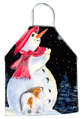 Caroline's Treasures SS8793APRON Snowman with Papillon Apron Cooking Kitchen Server Baking Crafts Gardening for Adult Women Men, Unisex, Large, Multicolor