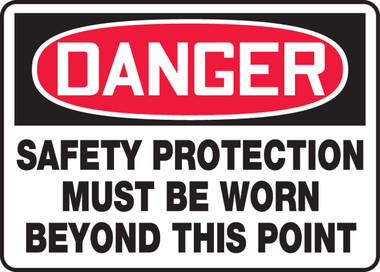 - Danger Safety Protection Must Be Worn Beyond This Point safety sign printed in OSHA-compliant colors