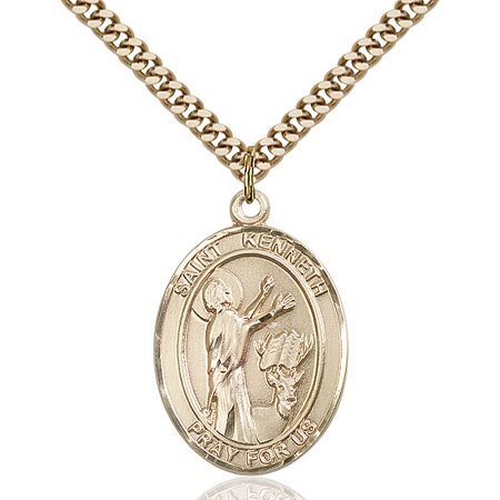 <p><b>Large Detailed Men's Gold Filled Saint St. Kenneth Medal Pendant 1 x 3/4" Monastery of Agahanoe On a 24" Stainless Gold Curb Chain Necklace Gift Boxed:</b></p> <ul> <li>1 x 3/4</li> <li>Gold Filled</li> <li>Saint St. KENNETH</li> <li>Monastery of Agahanoe</li> <li>Comes with a 24" chain Necklace</li> </ul>