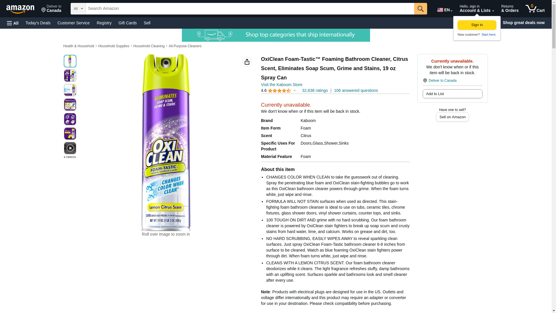 Kaboom OxiClean Foam-Tasticâ„¢ Foaming Bathroom Cleaner, Citrus Scent, Eliminates Soap Scum, Grime and Stains, 19 oz Spray Can