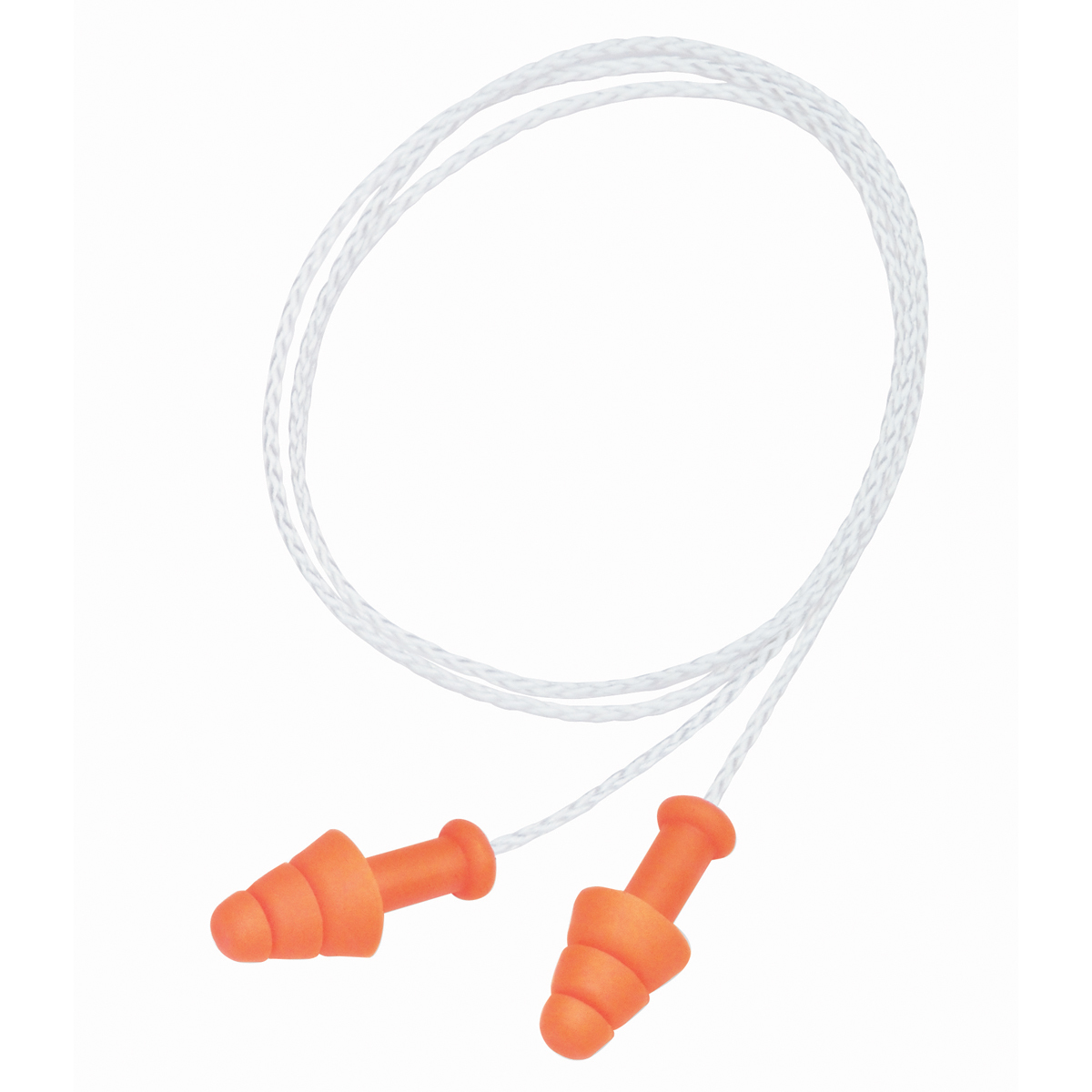 - Price For: Each Plug Color: Orange Metal Detectable: No Item: Ear Plugs Packaging: Paper Bag Shape: Flanged Series: SmartFit(R) Corded/Without Cord: Corded Ear Plug Size: Universal Disposable/Reusable: Reusable Cord Material: Cotton Pairs Per Package: 100 Noise Reduction Rating (NRR): 25dB Plug Material: Thermoplastic Elastomer Cord Color: White