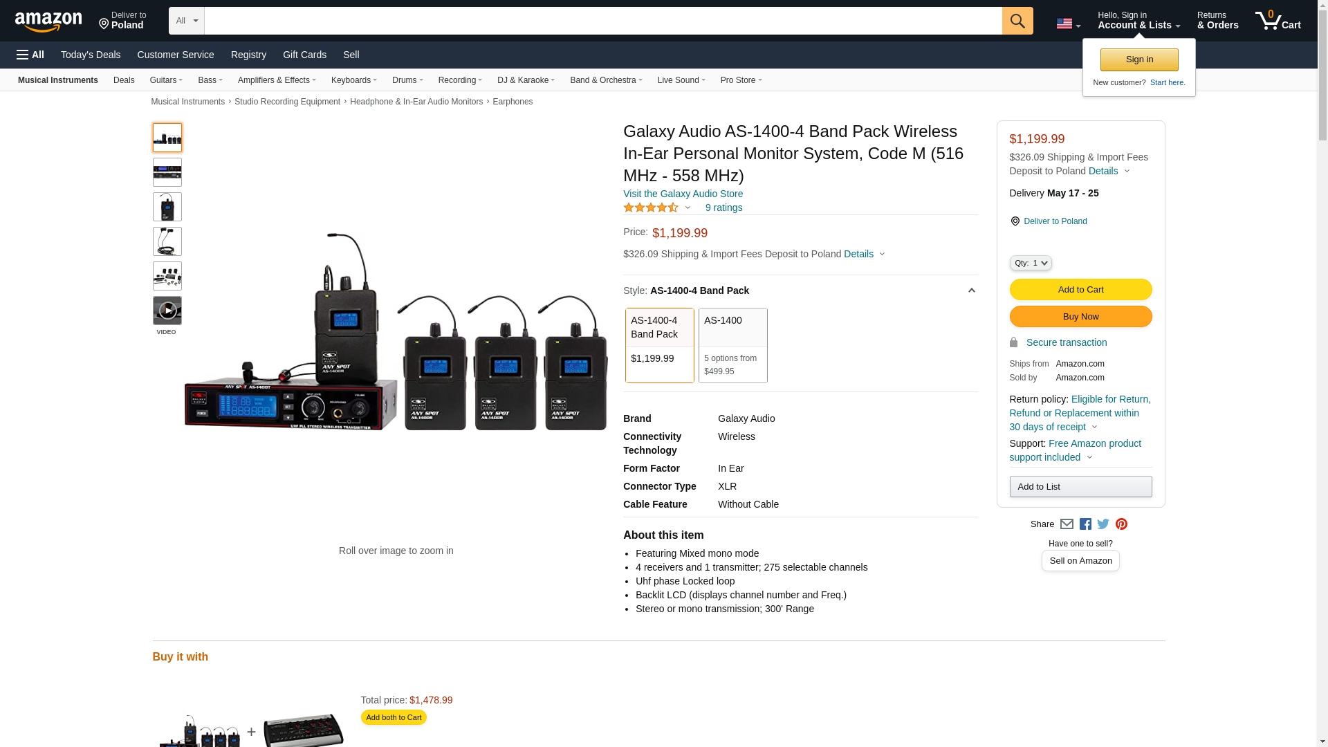 Galaxy Audio AS-1400-4 Band Pack Wireless In-Ear Personal Monitor System, Code M (516 MHz - 558 MHz)