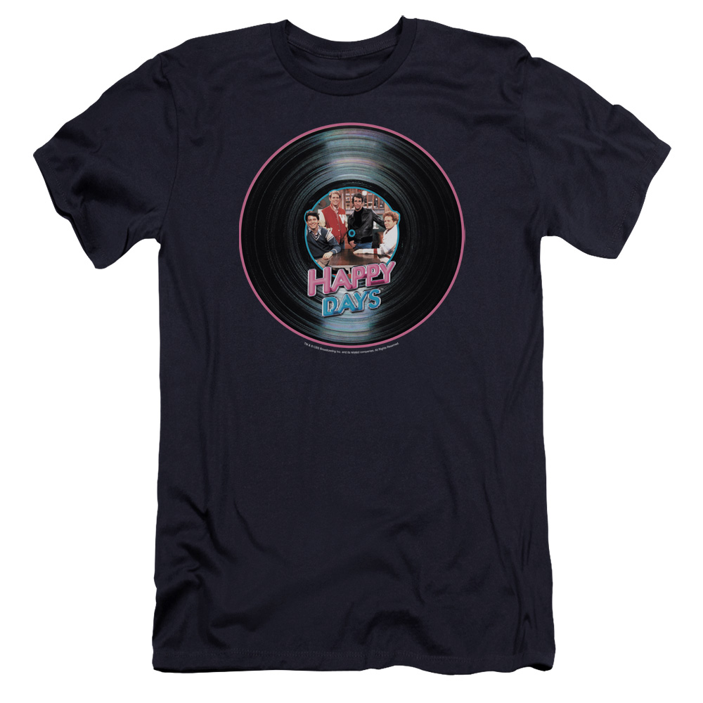 Trevco CBS130-PSF-4 Happy Days & On the Record Adult Cotton Premium Canvas Brand Slim Fit 30-1 T-Shirt, Navy - Extra