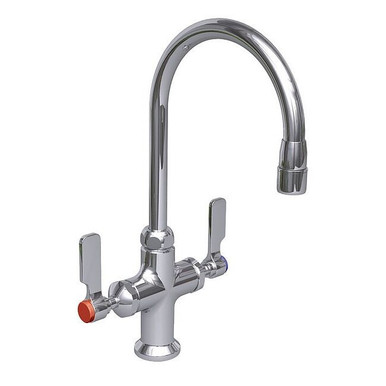 ' Laboratory Mixing Faucet, Two Handle, Handle Type Lever, Material of Construction Forged Brass, Faucet Finish Chrome, Spout 6 In., Spout Gooseneck, Number of Holes 1, Deck Mounting, Connection 3/8 O.D. Tube In., Flow Rate 3.20 GPM, Replacement Cartridge G1680332/G2903311, Cartridge Compression, ADA Compliant, Standards ASTM '