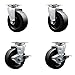 Swivel Top Plate Caster Set – Black 5 Inch by 2 Inch Polyolefin Wheel – Ball Bearing – 1,800 lbs. Total Capacity – Includes 2 Locking Swivel Casters and 2 Swivel Casters – Service Caster Brand