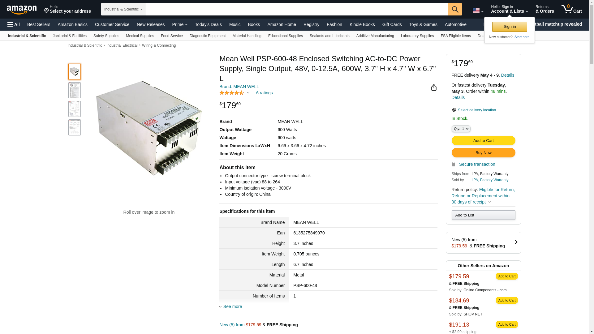 ![]() powersupplymall.com | PSP-600-48 | 1 | 5 | 1 | 1 @ $152.76 |