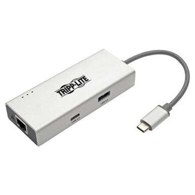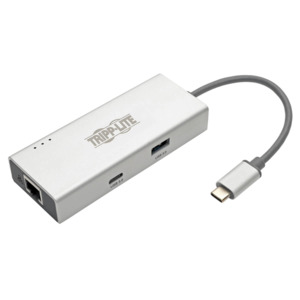 Tripp Lite USB C Docking Station w/ USB-A Hub, HDMI, Gbe, 4K @ 30Hz Portable Thunderbolt 3 Silver (U442-DOCK13-S)