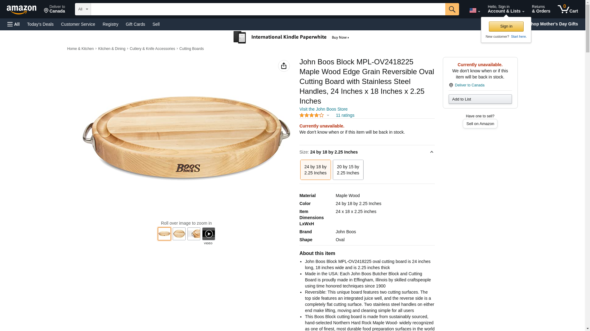 John Boos Block MPL-OV2418225 Maple Wood Edge Grain Reversible Oval Cutting Board with Stainless Steel Handles, 24 Inches x 18 Inches x 2.25 Inches