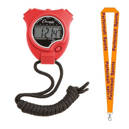 Bundle includes 2 Champion Sports Stop Watch Black with 1 Performall Lanyard. The Champion Sports Stopwatch is easy to use and packed with features. The large digital display includes 1/100 of a second precision, a lap counter, and 12 or 24 hour formats. Other useful features include calendar and time display, a daily alarm, and an hourly chime. Available in seven vibrant colors, it is also water and shock resistant, so you can train hard without worry. Bundle includes 1 Performall Sports Lanyard.
