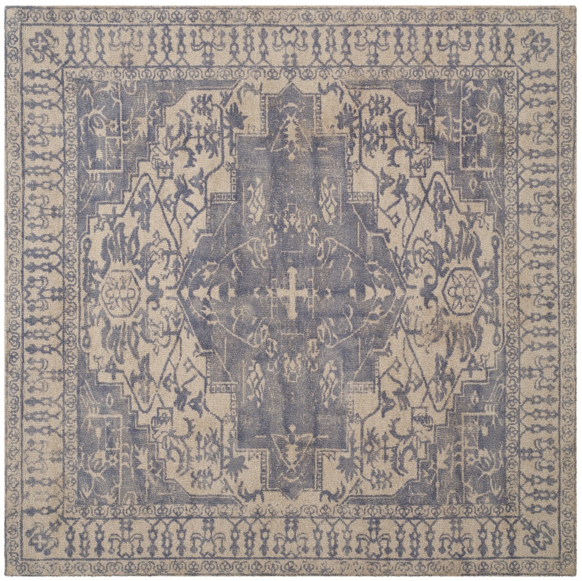 Restoration Vintage Hand Tufted Square Area Rug, Blue and Grey - 6 x 6 ft.