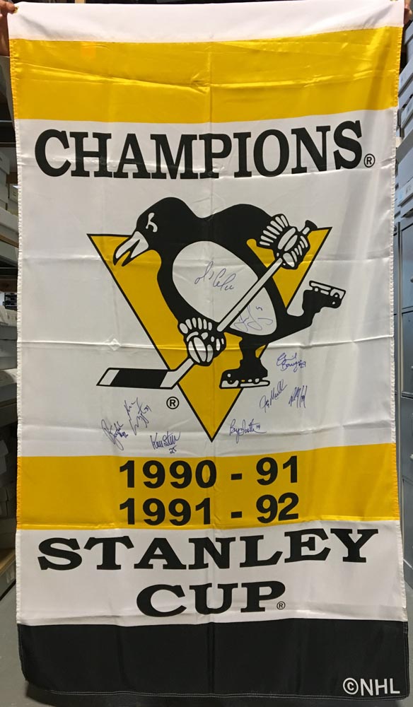 AJ Sports World TEAM13239A 36 x 60 in. Pittsburgh Penguins Autographed Stanley Cup 9 Player Team Signed Banner