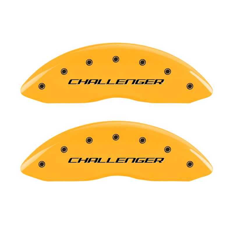MGP Caliper Covers Set of 4: Yellow finish, Black Challenger (Block) Dodge 2011-2019 | 12181SCLBYL