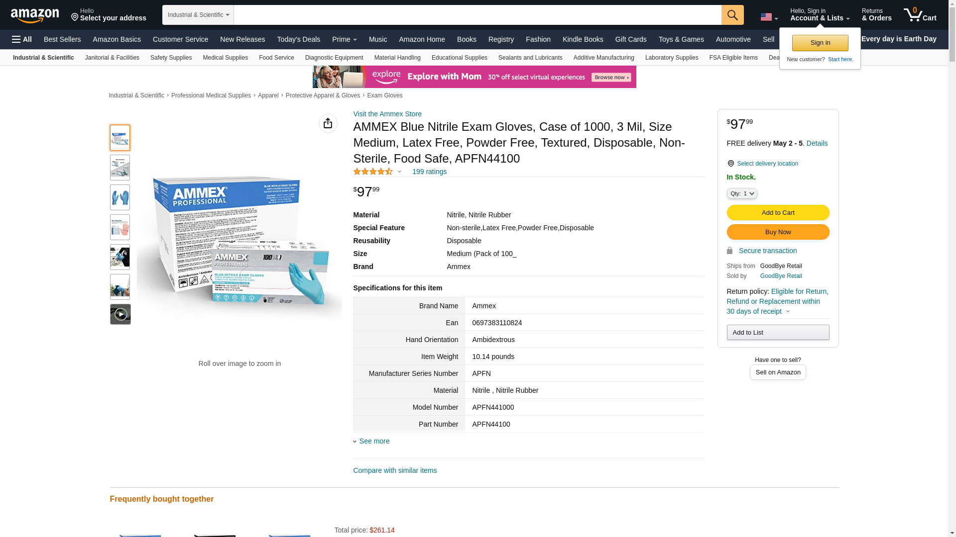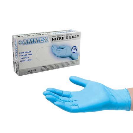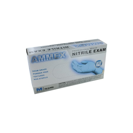 +Ammex Exam Grade Nitrile Glove, Powder Free, 9.5" Length, Medium, 100 Count (Pack of 10)