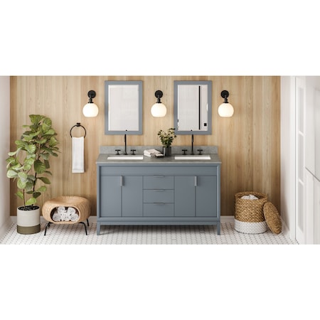 60" Blue Steel Theodora Vanity, Double Bowl, Steel Grey Cultured Marble Vanity Top, Two undermount Rectangle Bowls