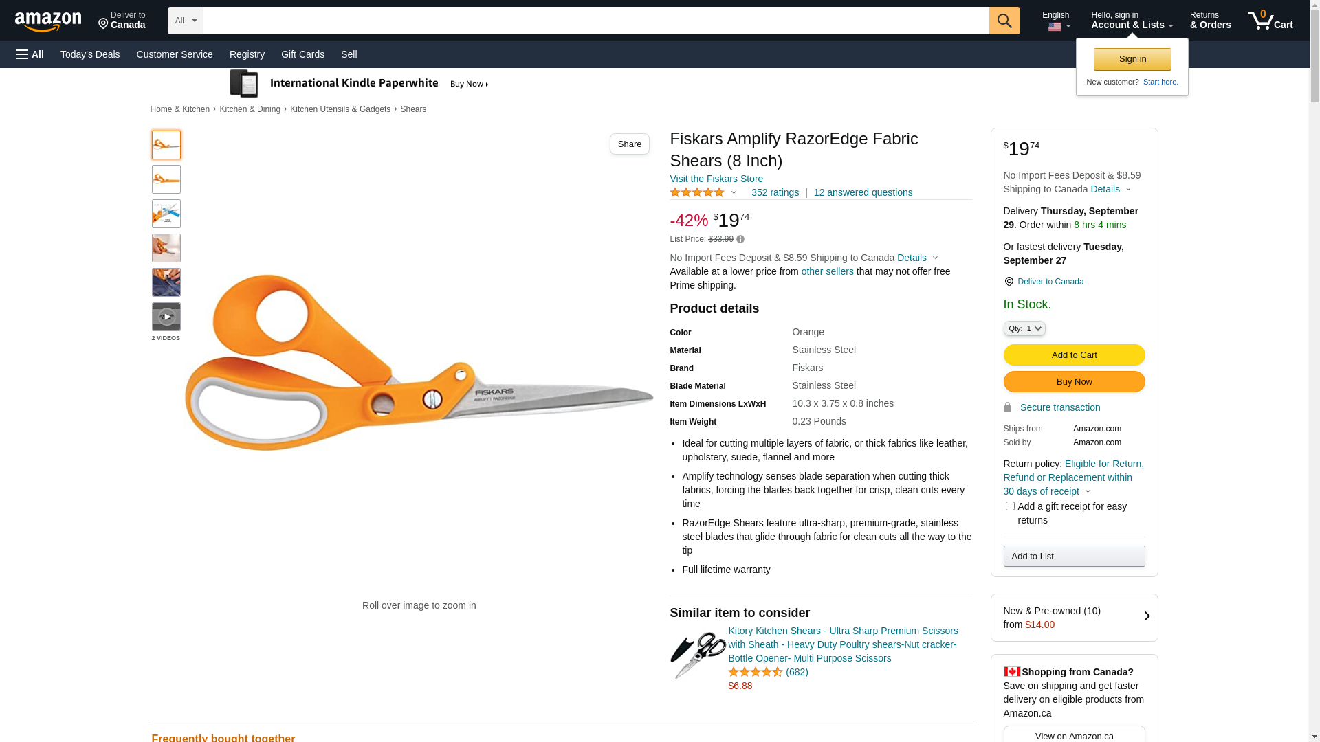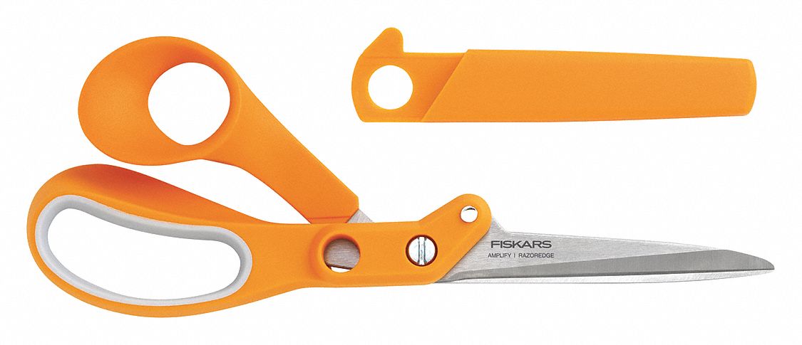 Fiskars - Amplify RazorEdge Shears 8",Fiskars Amplify RazorEdge Shears (Sewing) (8"). Color: Orange. SKU 170810-1001. Amplify technology senses blade separation when cutting thick fabrics and forces the blades back together for crisp