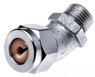 <br /><br /> Item: Liquid Tight Cord Connector<br /> Material: Zinc Plated Steel<br /> Conduit Size: 1/2"<br /> Length: 1.90"<br /> Cord Dia. Range: 0.50" to 0.63"<br /> Number of Cords: 1<br /> Connector Type: 45 Degrees<br /> Color: Brown<br /> Standards: UL Listed in Accordance with Standard 514B, CSA Certified, United States Coast Guard Approval, Title 46-Part 111<br />