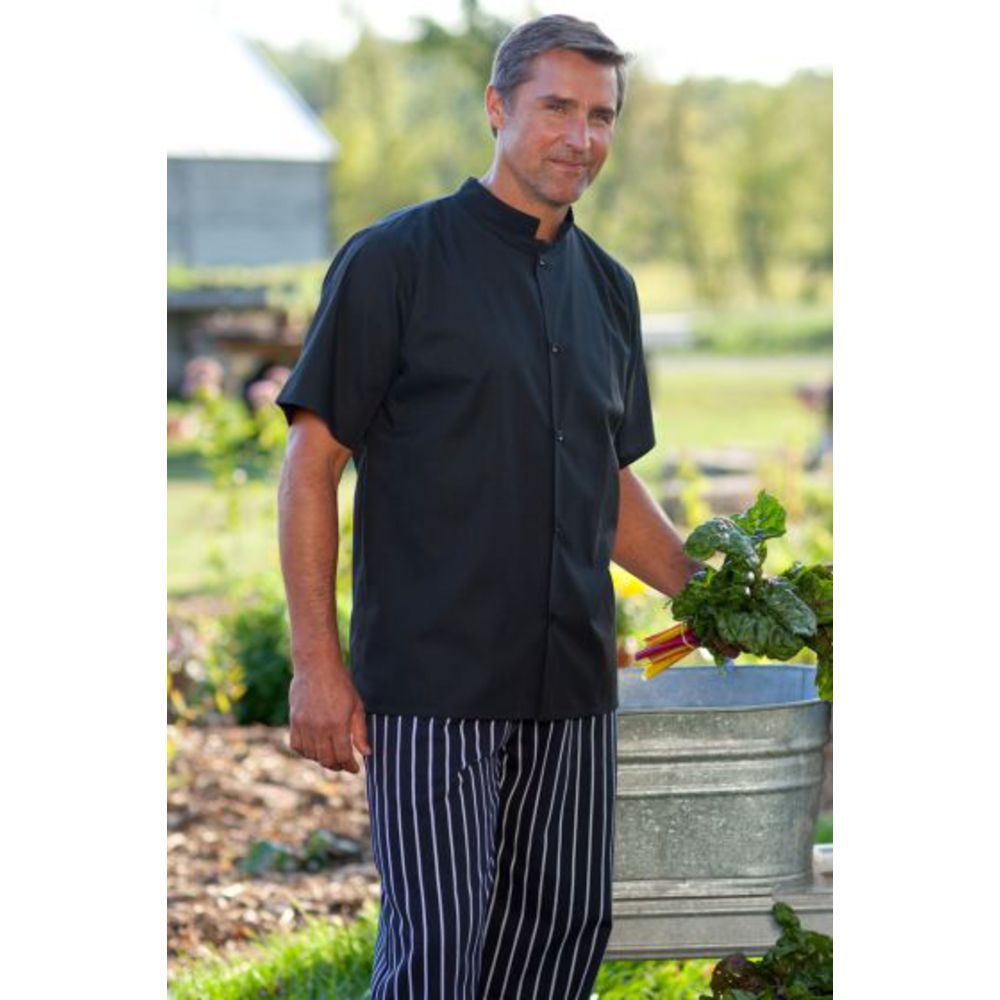 Uncommon Threads Unisex Mandarin Collar Restaurant Utility Shirt, Black, X-Small