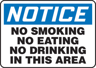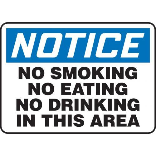 NOTICE NO SMOKING NO EATING NO DRINKING IN THIS AREA 10" x 14" Adhesive Vinyl Sign