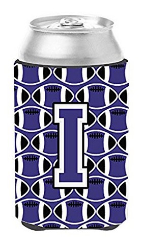 Carolines Treasures CJ1068-ICC Letter I Football Purple & White Can or Bottle Hugger